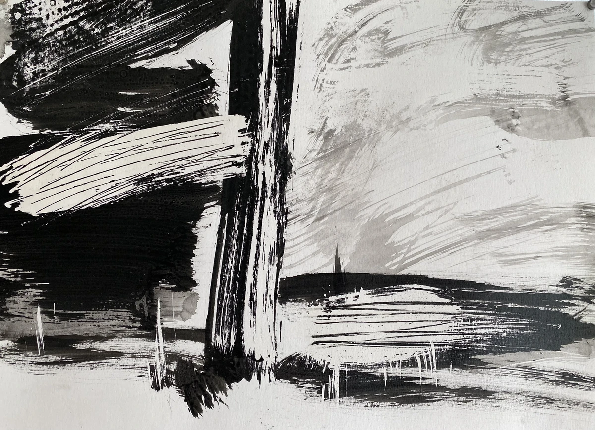 On this page, I have extracted a representative work in the following techniques: ink, sketches and lino-cuts. Explore their respective galleries.