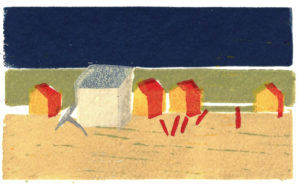 Linogravure: La plage au soleil pendant l’orage (V. Lacroix)