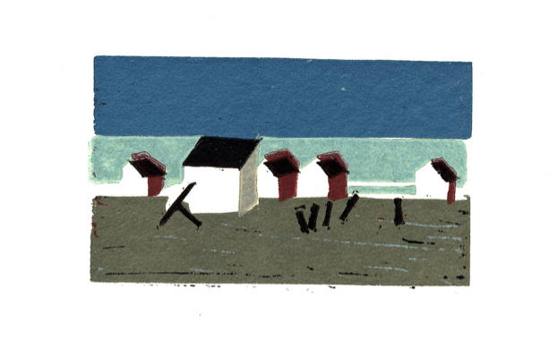 Linogravure: la plage la nuit (V. Lacroix)