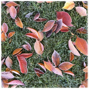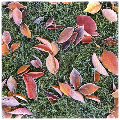Feuilles mortes sur gazon gelé