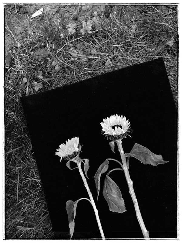 Vous pouvez obtenir de beaux résultats même avec l’appareil photo de votre téléphone. La clef de la réussite: une bonne exposition de la scène. Dans l’exemple ci-dessous j’ai photographié des tournesols sur un carton noir. L’exposition doit se faire sur la couronne de la fleur, la partie la plus claire de la scène. Vous devrez sous-exposer la photographie car la cellule de votre appareil ignore que l’ensemble de la photographie est sombre; l’automatisme associé à la prise de vue tentera de corriger cette ambiance globale sombre en donnant une valeur trop claire au fond.