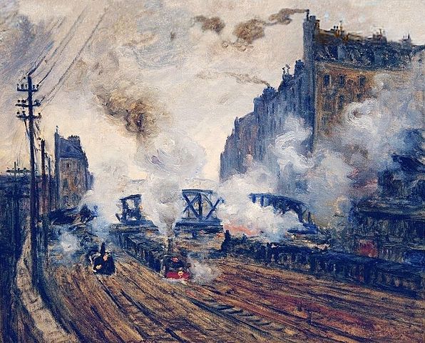 Jeu de lumière dans les fumées des trains dans "La tranchée des Batignoles". Monet