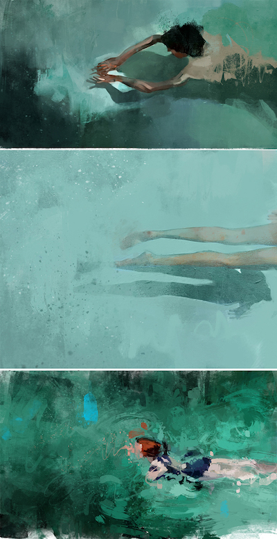 Ma ré-interprétation du poster de David Hockney pour les jeux Olympiques de 1972.