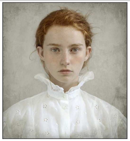 Les portraits du photographe/peintre contemporain Louis Tresseras semblent influencés par la tradition picturale présentée plus haut. Dans les trois portraits ci-dessous les différents blancs et la matière qui lui est associée ne nous donnent-ils pas des indications sur la personnalité des jeunes filles?