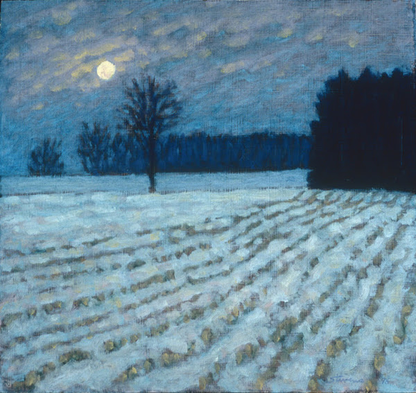Bien sûr dans ce panorama j’aurais pu vous montrer les « Chasseurs dans la neige » de Brueghel , ou des paysages de Valerius de Sadeleer, ou encore d’autres paysages hivernaux proposés ici mais la variété des blancs m’y a semblé moins intéressante. C’est sans doute aussi le cas de ce paysage à l’heure bleue de William Degouve de Nuncques (1865-1935), que je ne résiste cependant pas à vous montrer, par allusion au défi #7.