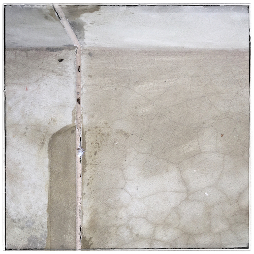 La salle de bain ci-dessous est à la fois vide et habitée. Vide par ce miroir qui nous renvoie un mur nu que seul un reflet traverse. Habitée par des objets quotidiens qui nous invitent dans l’intimité d’une vie de couple. Remarquez la composition très structurée, séparée en deux parties : la partie supérieure, quasi frontale, qui dans la réalité devrait renvoyer l’image du spectateur, et la partie inférieure, plongeante.