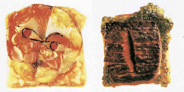 L’agence FOVEA a matérialisé une série de tableaux connus sous forme d’amuse-gueules. L’article paru en 1988 donnait même les ingrédients des douze recettes. Voici le résultat du chef. L’une ou l’autre image de meilleure qualité (mais en version miroir) est visible sur le site de Guido Pretzl, le photographe spécialisé en photographie culinaire qui les a réalisées.