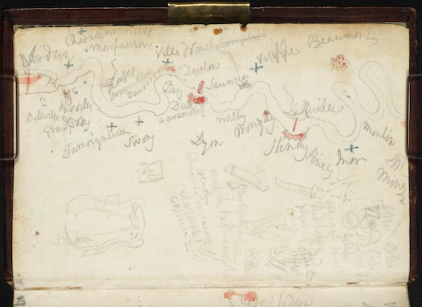 William Turner, Croquis représentant un itinéraire de voyage