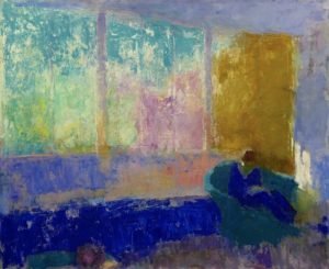 L’ombre et la pénombre sont représentées par des tons bleus violets dans ce tableau de Michael Ryan