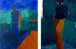 Deux modèles plongés dans l’ombre; peintures de Michael Ryan