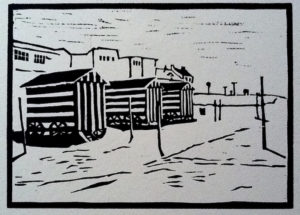 Vinciane Lacroix, « Cabines de Plage » (linogravure)