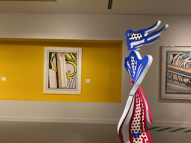 Roy Lichtenstein au BAM; à gauche, « Rêverie » (1965), à droite, une sculpture (photos V. Lacroix).