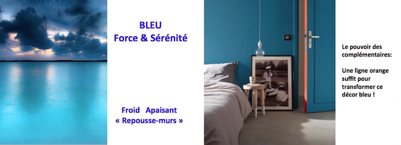 Enfin, essentiel, le jeu des associations de couleur vient au besoin rééquilibrer l’énergie de chaque couleur, par exemple avec notre rouge, nous pouvons réduire son énergie en l’accompagnant d’un bordeaux, ou d’un bleu calme et tranquille, et pourquoi pas des deux ?