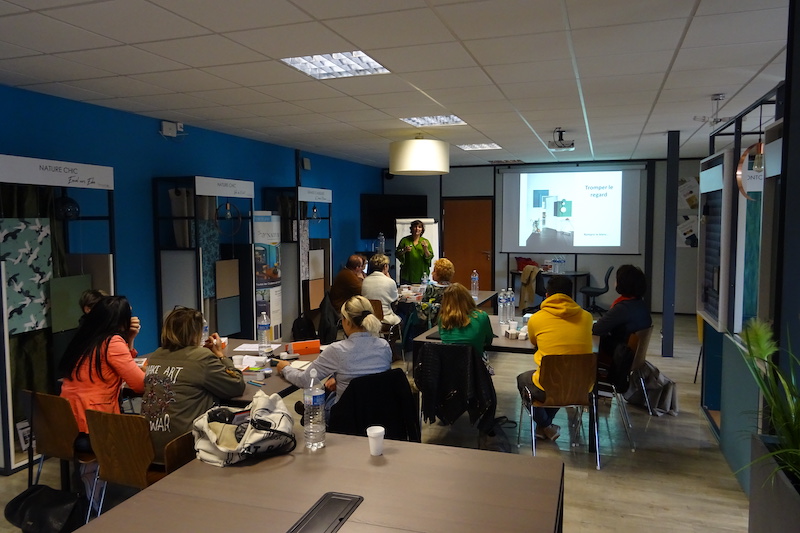 Coté pratique, c’est simple : j’ai besoin d’un grand écran car le fil conducteur de ma formation est sur Powerpoint. Celui-ci est très visuel car je m’adresse à des professionnels qui travaillent avec le visuel, il contient aussi des vidéos, du son (oui, pour ressentir la couleur !)… et beaucoup de surprises. Je raconte la couleur et ses incroyables effets psycho-physiques, de façon vivante et interactive. A ce jour, après plus de 450 personnes formées depuis 15 années, personne ne s’est jamais plaint, ni endormi pendant les cours ! ☺