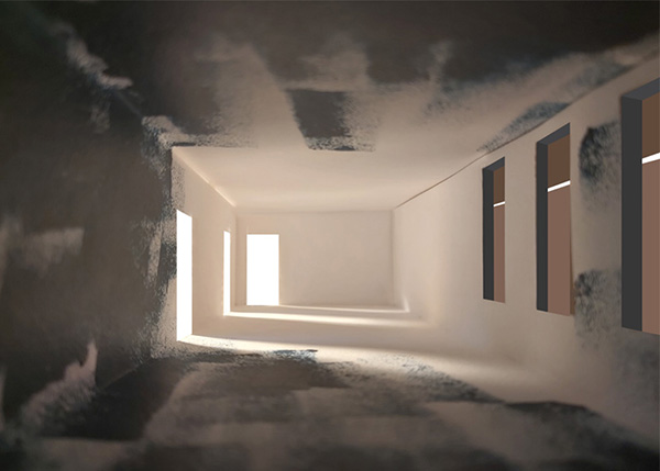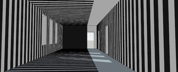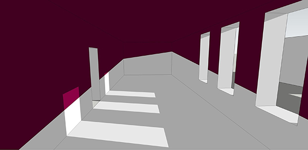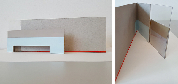Vu la difficulté d’abstraction de cet exercice, cette année, nous l’avons rendu plus concret. Au moyen de 2 angles, les étudiants devaient concevoir pour le patio des Musées Royaux des Beaux-Arts de Bruxelles, un espace de déambulation, d’approche, de découverte et de contemplation d’une œuvre picturale. Le scénario (dispositif, ambiance, choix des couleurs et des matériaux, assise devant le tableau…) devait s’inspirer de l’œuvre choisie.