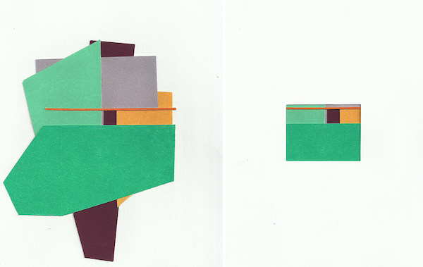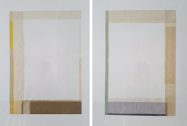 Quant à ses compositions de papiers colorés plus ou moins translucides, elles nous invitent à apprécier un continuum de couleurs passant de l’une à l’autre, tantôt délicatement tantôt brutalement selon les contrastes pensés par l’artiste.