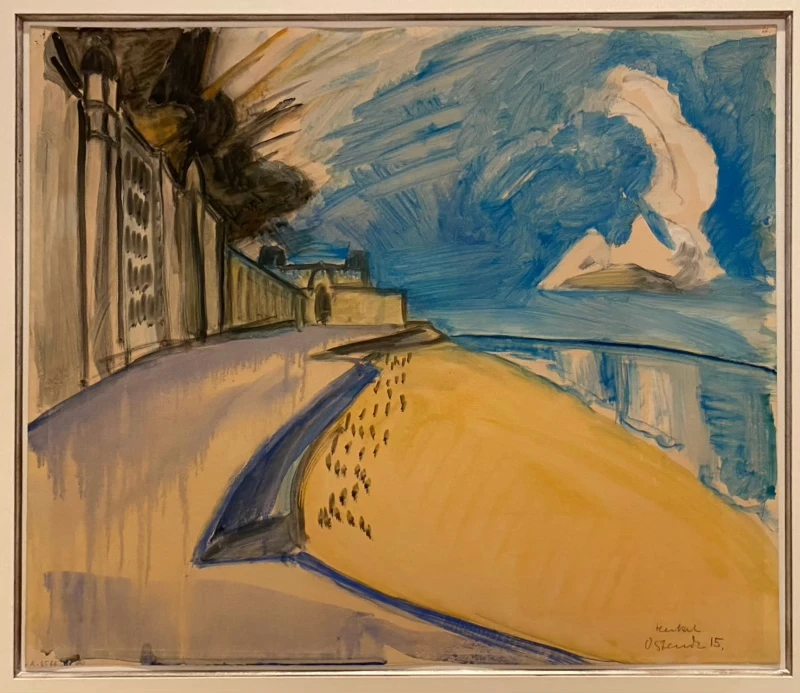 Quelle surprise de découvrir là une aquarelle d’Erich Heckel, expressionniste allemand et membre fondateur de Die Brücke. Ostende intemporelle, encore la digue près de Thermes.