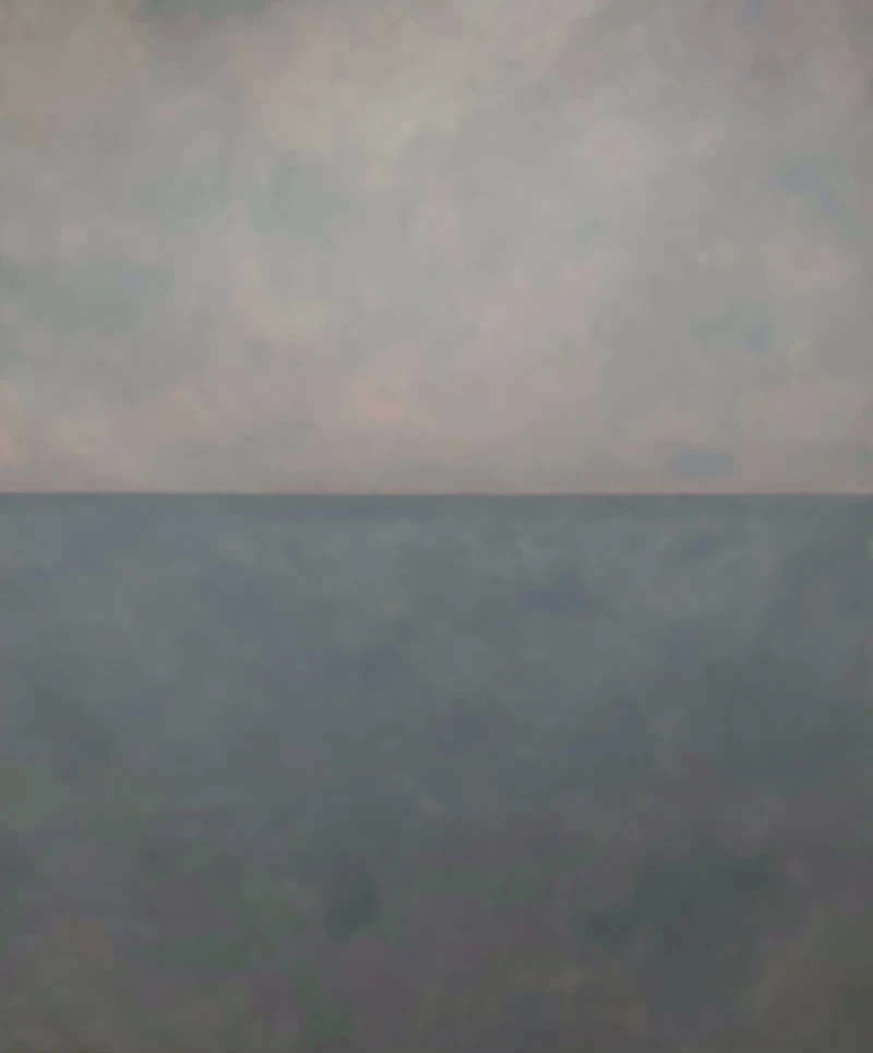 Dans un registre plus méditatif, Robert Clicque peint de simples horizons de mer et de ciel, ouvrant un espace contemplatif.