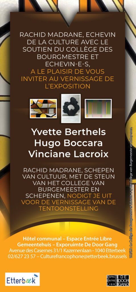 Du 11/12/2025 au 5/01/2026, de 8h à 16h (de 8h à 19h le mardi), une exposition des nouvelles chromagenèses à l’hôtel communal d’Etterbeek. Il s’agit d’une exposition collective avec la vitrailleuse Yvette Berthels et le sculpteur Hugo Boccara.